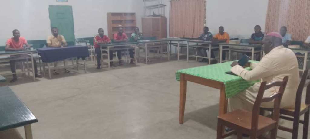 L’equipe de football du seminaire Saint Augustin en recontre avec celle du seminaire de Donia au en début du mois de Mai- la photo des formateurs du seminaire-la photo des deux formateurs avec les seminaristes- la photos de l’equipe de football du seminaire.